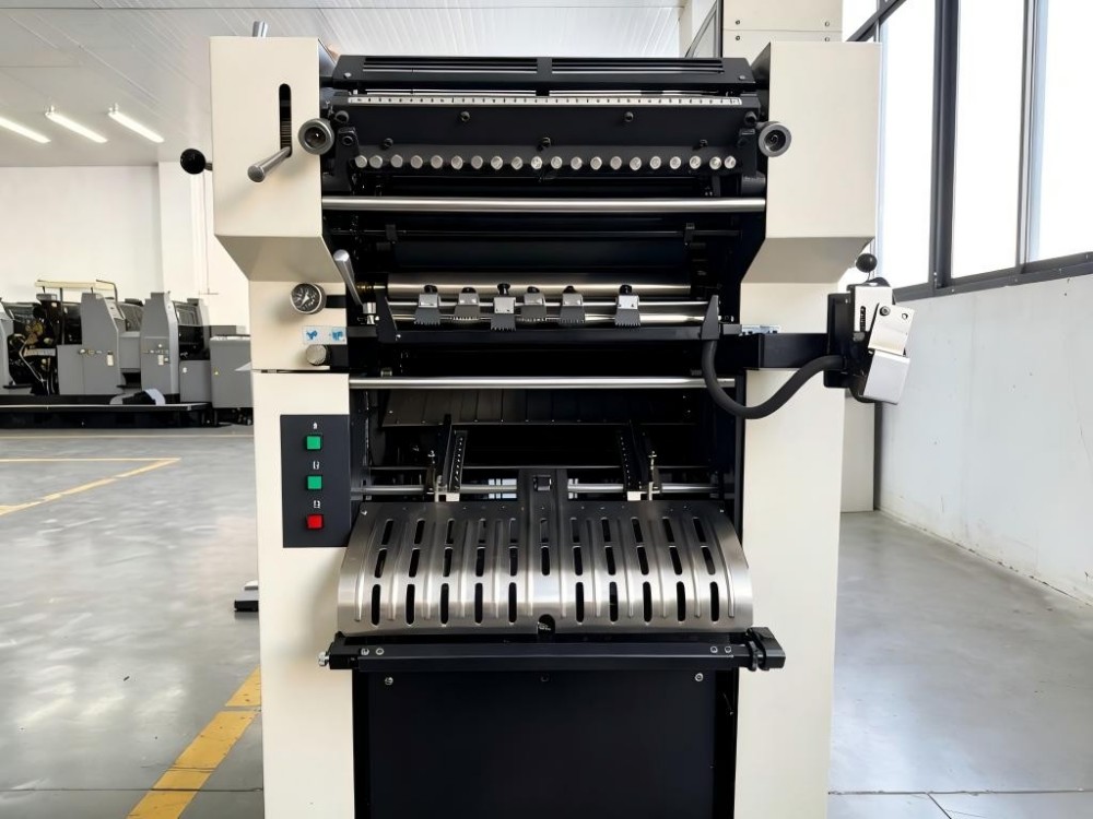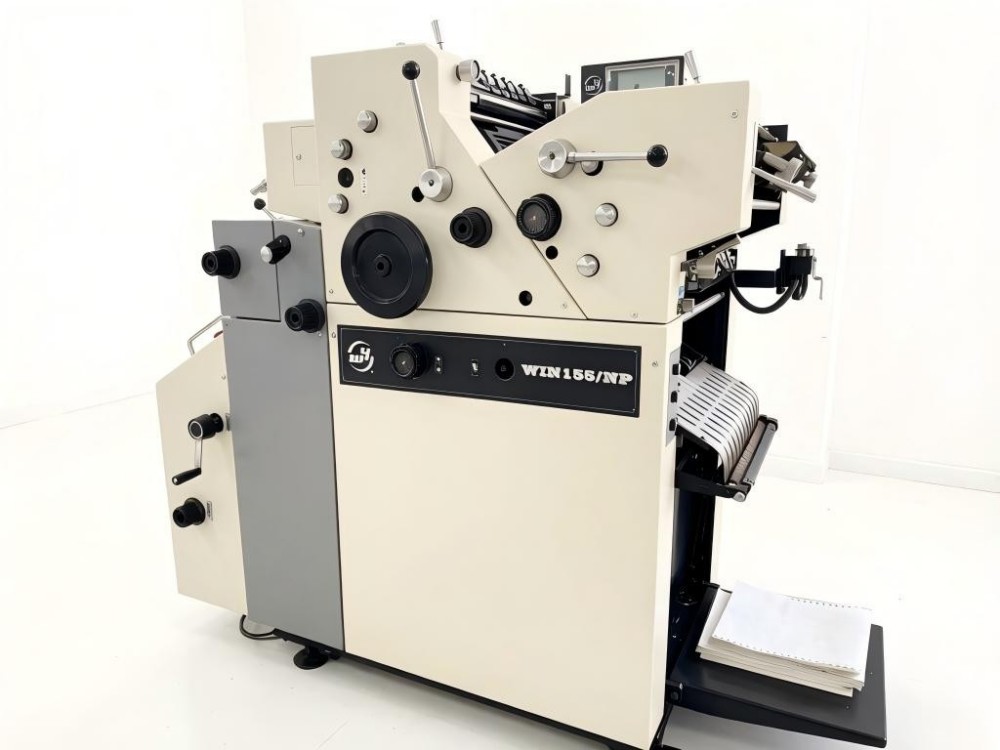 Den 15,5-tommers tofargede kontinuerlige skjematrykkpressen, som kjører på papirrull på 15,5 tommer, brukes hovedsakelig til å skrive ut flerdelte skjemaer, løpende skjemaer og fakturaer. Det har vist seg å være svært effektivt og rimelig når det gjelder å produsere former i høyt volum og i standardiserte to farger.